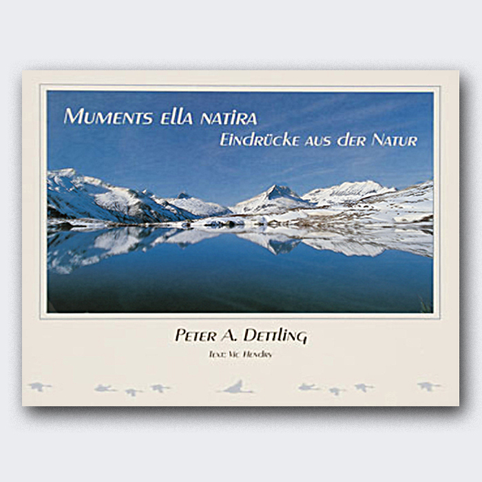 Das Erstlingswerk: Im Oktober 2000 hat Peter A. Dettling sein erstes Buch in Zusammenarbeit mit dem bedeutenden romanischen Schriftsteller Vic Hendry veröffentlicht. In «Eindrücke der Natur» zeigt der Künstler mit ausdruckstarken Aquarellen und Fotografien Szenen, welche er zwischen 1996 und 1999 selber erlebt hat. Das Buch ist zweisprachig (Rätoromanisch und Deutsch).