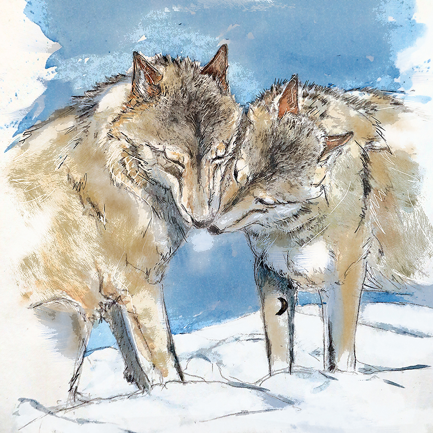 Ein handsigniertes Bild aus dem Buch Wolfsdynastien. Leinwand. 30 x 30 x 2 cm.